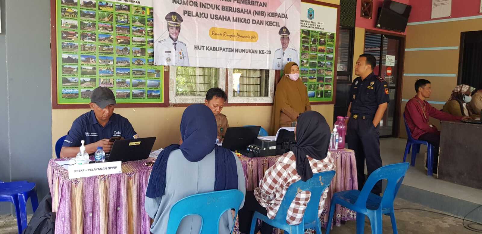 Kantor Pelayanan, Penyuluhan, dan Konsultasi Perpajakan (KP2KP) Nunukan memberikan layanan publik bersama dengan Dinas Penanaman Modal dan Pelayanan Terpadu Satu Pintu (DPMPTSP) Kabupaten Nunukan di Kantor Desa Binusan, Kab. Nunukan (Selasa, 27/10). Kegiatan pemberian layanan tersebut berlangsung selama enam jam mulai pukul 09.00 – 15.00 WITA.