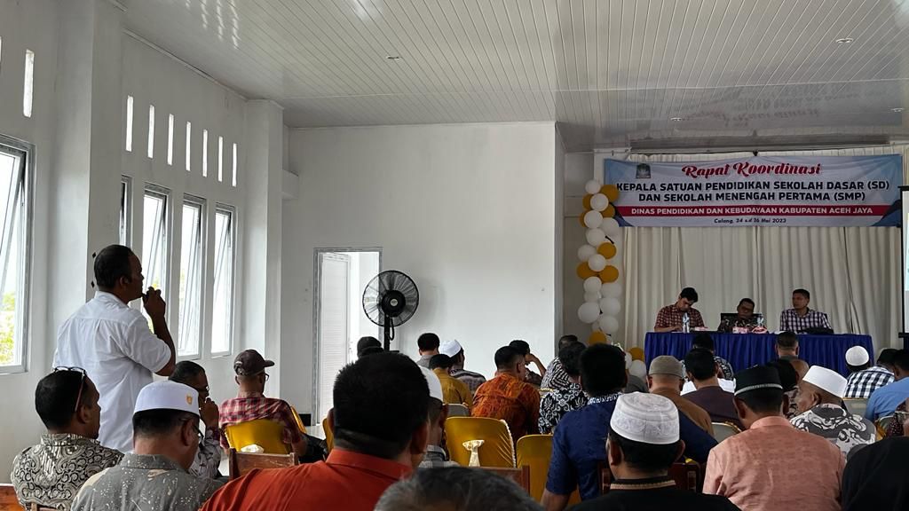 Kantor Pelayanan, Penyuluhan dan Konsultasi Perpajakan (KP2KP) Calang bersama Tim Penyuluh Kantor Pelayanan Pajak (KPP) Pratama Meulaboh memenuhi undangan Kepala Dinas Pendidikan dan Kebudayaan Aceh Jaya untuk menyampaikan materi terkait perpajakan atas Dana Bantuan Operasional Sekolah (BOS) dalam Rapat Koordinasi Kepala Sekolah Satuan Pendidikan SD dan SMP di Aula SMP Unggul Calang (Jumat, 26/5).