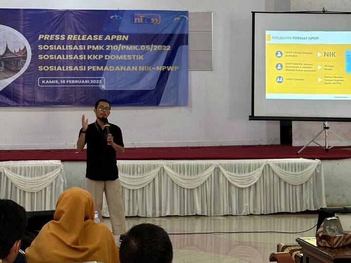 Kantor Pelayanan Perbendaharaan Negara (KPPN) Lubuk Sikaping mengundang Kantor Pelayanan Penyuluhan dan Konsultasi Perpajakan (KP2KP) Lubuk Sikaping untuk mengadakan kegiatan edukasi kepada Pejabat Perbendaharaan (Pejabat Pembuat Komitmen dan Bendahara Pengeluaran Satker) KPPN Lubuk Sikaping di Gedung Syamsiar Thaib, Kab. Pasaman (Kamis, 16/02). Dalam kegiatan tersebut, KP2KP Lubuk Sikaping diberikan kesempatan untuk memberikan edukasi tentang pemadanan NIK dengan NPWP.