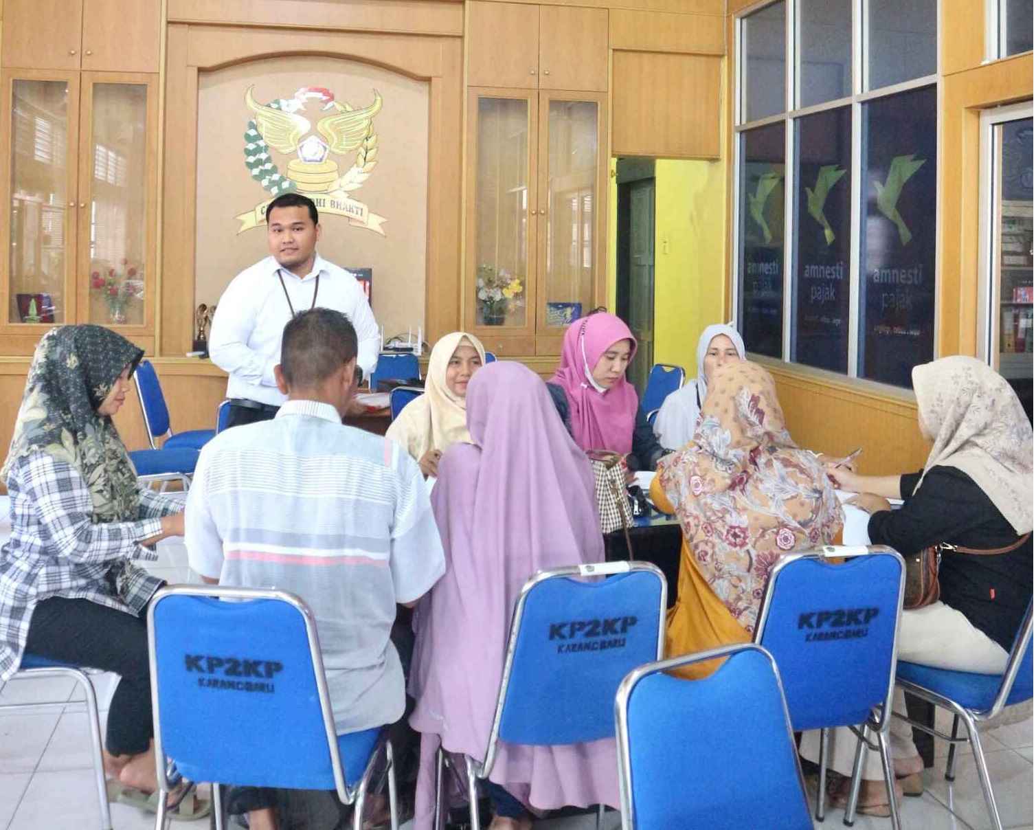 Kantor Pelayanan Penyuluhan dan Konsultasi Perpajakan (KP2KP) Karang Baru melaksanakan kelas pajak pelaporan Surat Pemberitahuan (SPT) Tahunan Pajak Penghasilan (PPh) Badan bagi para pengurus Lembaga Pendidikan Taman Kanak-Kanak (TK) dan Pendidikan Anak Usia Dini (PAUD) se-Aceh Tamiang bertempat di Aula KP2KP Karang Baru, Jalan Iskandar Muda No.4, Kota Kuala Simpang, Kabupaten Aceh Tamiang (Senin, 17/04). Kelas pajak berlangsung dalam dua sesi yaitu sesi pagi dan sesi siang, dengan dihadiri 27 perwakilan lembaga pendidikan TK dan PAUD di Aceh Tamiang.