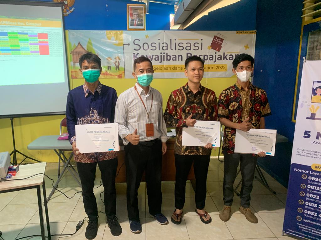 Staf penyuluh pajak bersama sembilan belas bendahara desa dari Kecamatan Cintapuri Darussalam, Kecamatan Paramasan, dan Kecamatan Telaga Bauntung melakukan monitoring dan evaluasi perpajakan terkait realisasi APBDesa pada tahun 2022.