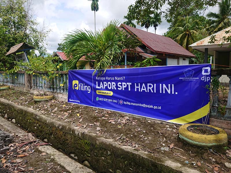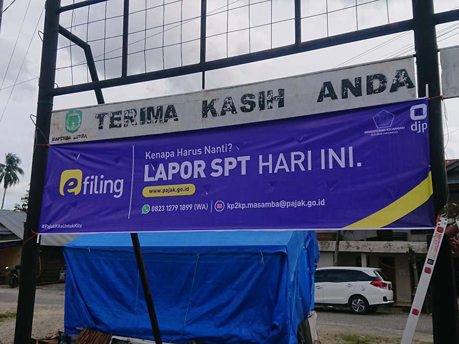 Kantor Pelayanan, Penyuluhan, dan Konsultasi Perpajakan (KP2KP) Masamba melakukan pemasangan spanduk e-Filing yang tersebar di berbagai sudut Perkantoran Pemerintah dan fasilitas umum strategis di Kabupaten Luwu Utara (Sabtu, 6/2). Kegiatan tersebut dilaksanakan selama dua hari mengingat luasnya wilayah kerja KP2KP Masamba.