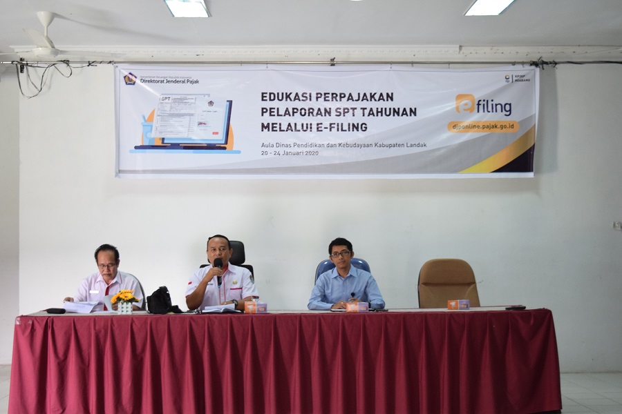 KP2KP Ngabang melakukan kegiatan edukasi perpajakan di Kantor Dinas Pendidikan dan Kebudayaan Landak (Rabu, 22/1). Kegiatan yang bertujuan mengedukasi para guru untuk melaporkan SPT Tahunan melalui e-Filing ini diikuti oleh perwakilan guru di seluruh sekolah Kabupaten Landak. Kegiatan edukasi ini diselenggarakan selama lima hari hingga Jumat, 24 Januari 2020.