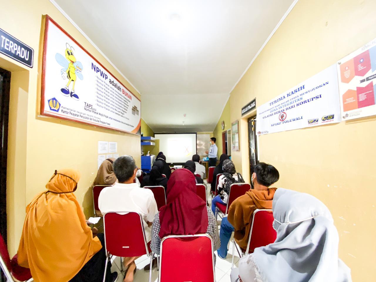 Kantor Pelayanan, Penyuluhan, dan Konsultasi Perpajakan (KP2KP) Polewali mengadakan edukasi perpajakan yang dikemas dalam sesi Kelas Pajak bagi Wajib Pajak Orang Pribadi (WP OP) pelaku Usaha Mikro Kecil Menengah (UMKM) (Selasa, 8/6). Kegiatan ini diadakan secara tatap muka dengan penerapan protokol kesehatan di ruang tengah KP2KP Polewali, Kabupaten Polewali Mandar.