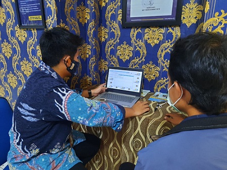 Pegawai Kantor Pelayanan, Penyuluhan, dan Konsultasi Perpajakan (KP2KP) Sanana memberikan bantuan dan arahan pembuatan faktur pajak pada aplikasi e-Faktur 3.2 kepada wajib pajak (Selasa, 10/5).