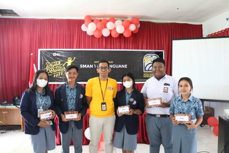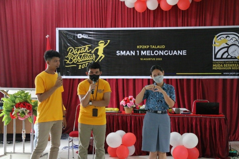 Kantor Pelayanan, Penyuluhan, dan Konsultasi Perpajakan (KP2KP) Talaud melaksanakan kegiatan Pajak Bertutur di Sekolah Menengah Atas (SMA) Negeri 1 Melonguane (Kamis, 18/8).