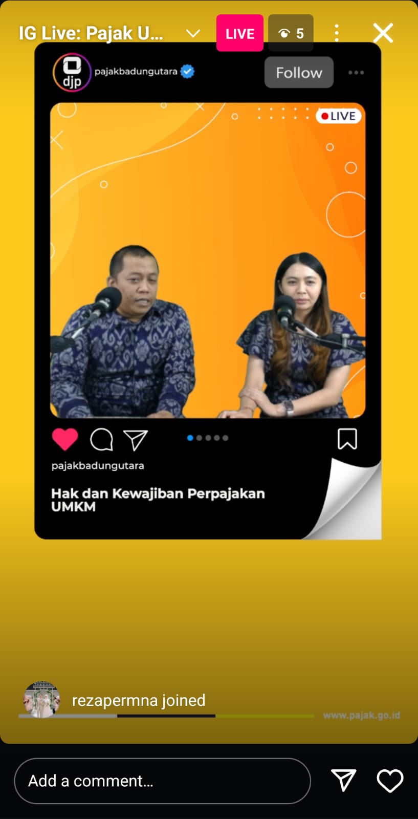 Sebanyak sembilan puluh akun wajib pajak tercatat mengikuti siaran langsung ini. Kolom pertanyaan dipenuhi diskusi aktif, namun tidak seluruh pertanyaan dapat terjawab karena keterbatasan waktu.