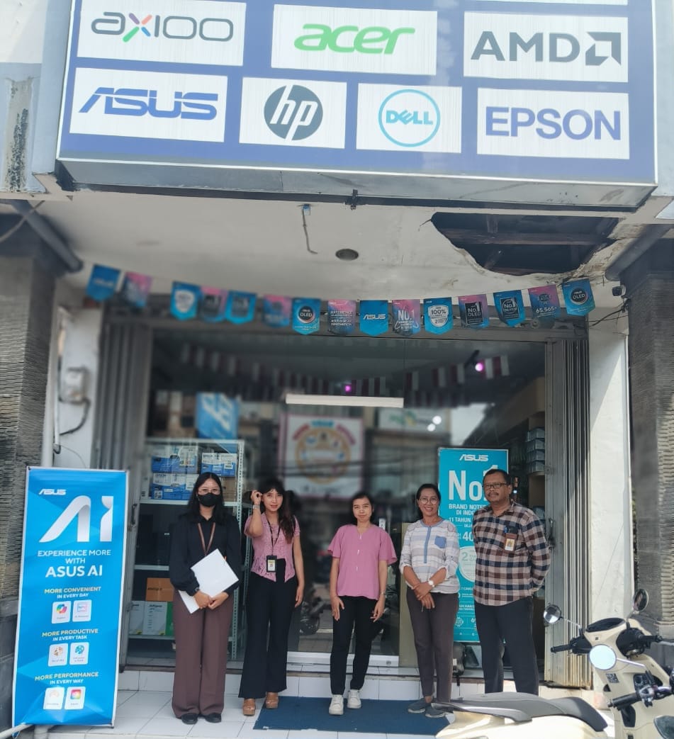 Tim Penelitian Lapangan Kantor Pelayanan Pajak (KPP) Pratama Badung Utara yang terdiri dari Echa dan Ratih melakukan kunjungan langsung ke lokasi kegiatan usaha wajib pajak yang bergerak di bidang perdagangan besar komputer di Kecamatan Kuta Utara, Kabupaten Badung (Selasa, 22/1).