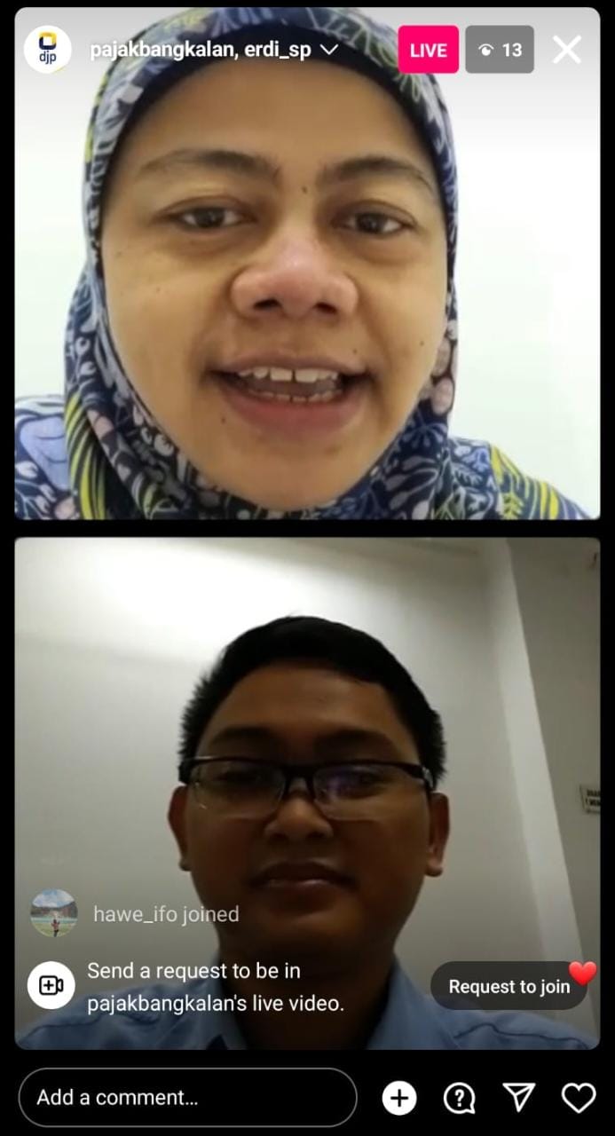 Kantor Pelayanan Pajak (KPP) Pratama Bangkalan mengadakan kegiatan penyuluhan tidak langsung dua arah dengan tema validasi NIK-NPWP secara daring melalui Instagram Live, yang diikuti oleh belasan wajib pajak (Rabu, 17/5).