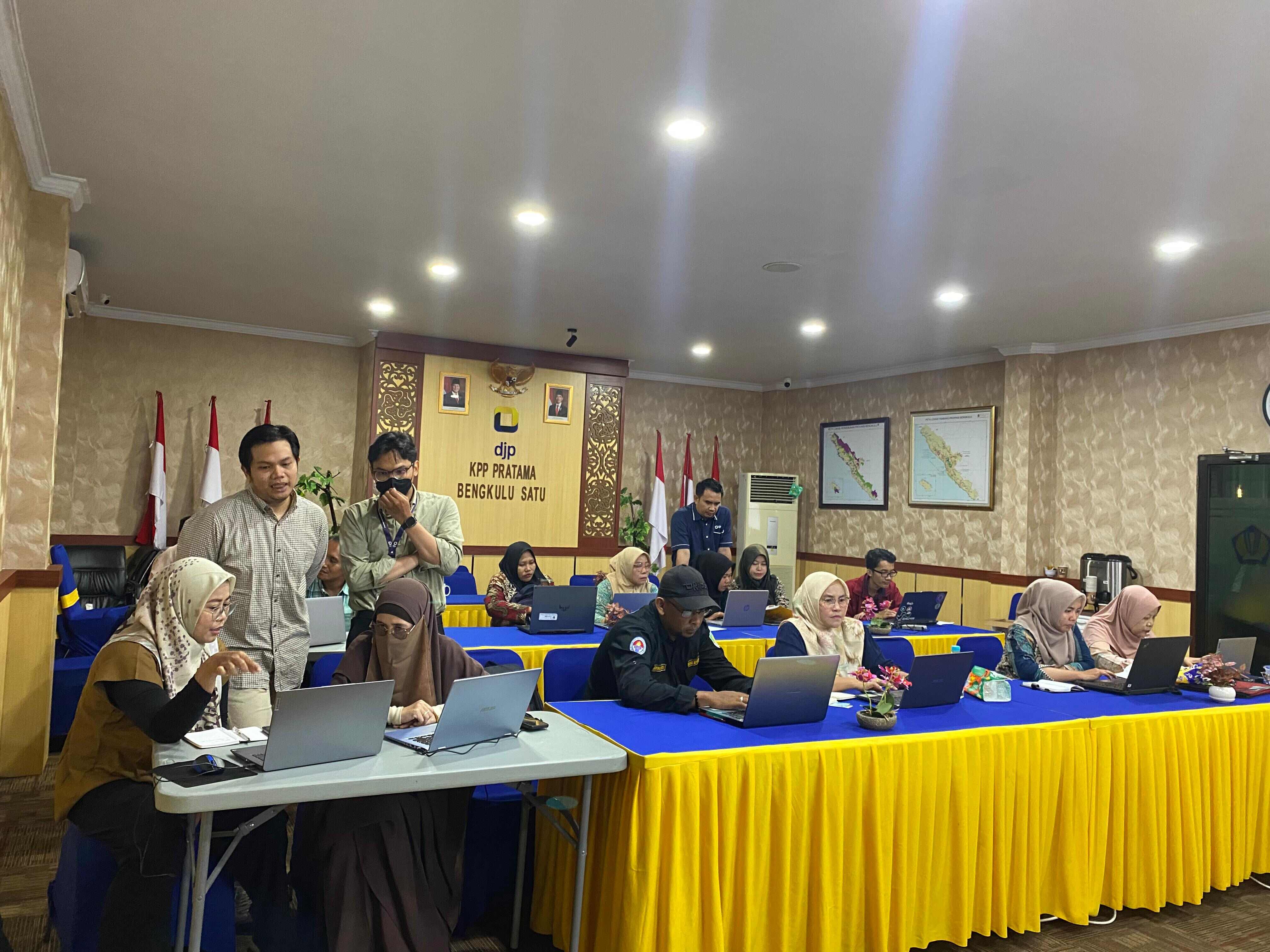 Kantor Pelayanan Pajak (KPP) Pratama Bengkulu Satu menggelar sesi pelatihan perpajakan bagi wajib pajak yang ingin memahami prosedur teknis Coretax DJP di Aula KPP Pratama Bengkulu Satu, Kecamatan Ratu Samban, Kota Bengkulu (Kamis, 29/1). Ini bertujuan membekali peserta dengan keterampilan praktis dalam penggunaan sistem tersebut.