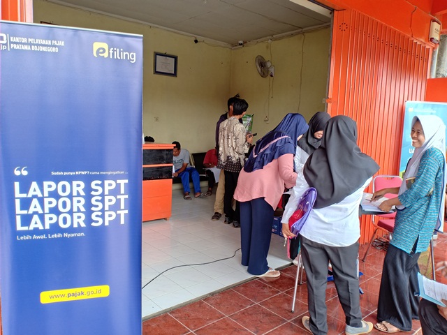 KPP Pratama Bojonegoro membuka layanan Pojok Pajak di Kantor Pos Ngraho Kabupaten Bojonegoro (Selasa, 11/2). Layanan tersebut dilakukan mengingat jarak KPP Pratama Bojonegoro dengan tempat tinggal wajib pajak di kecamatan Ngraho cukup jauh, kurang lebih sekitar 48 kilometer. Puluhan wajib pajak semangat berdatangan untuk lapor SPT Tahunan.