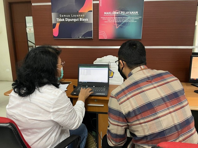 Asistensi diberikan kepada beberapa Wajib Pajak yang datang langsung ke KPP untuk melakukan konsultasi dan asistensi penyampaian SPT Tahunan 1771 melalui e-Form.