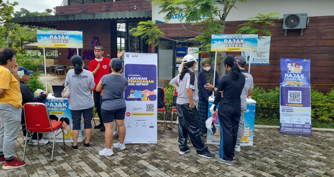 Kantor Pelayanan Pajak (KPP) Pratama Bandung Cicadas giat menggelar pojok pajak asistensi pelaporan Surat Pemberitahuan (SPT) Tahunan dan pemadanan Nomor Induk Kependudukan (NIK) menjadi Nomor Pokok Wajib Pajak (NPWP) di Stadion Gelora Bandung Lautan Api (GBLA), Kota Bandung (Minggu,19/2).