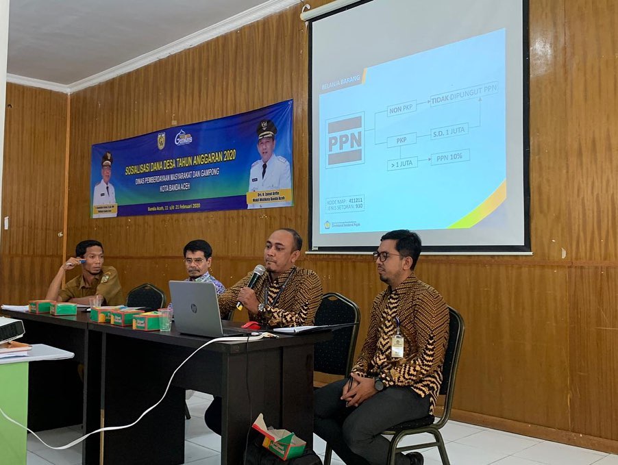 Kantor Pelayanan Pajak (KPP) yang mempunyai tupoksi edukasi, pengawasan, dan pemeriksaan pajak desa/ gampong memberikan materi perpajakan pada seluruh perangkat desa/gampong yang hadir. Kegiatan sosialisasi dan edukasi seperti ini sangat penting untuk meningkatkan kesadaran pajak dan pengawasan pajak desa dapat berjalan dengan baik sehingga akan berbanding lurus dengan kepatuhan pajak desa.