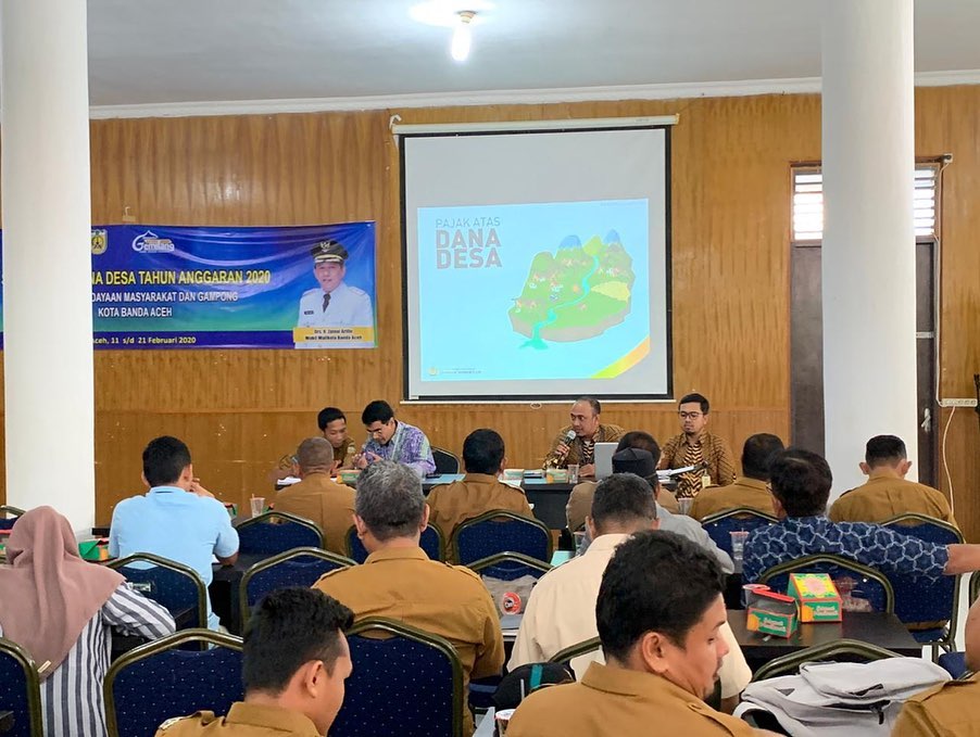 KPP Pratama Banda Aceh diundang menjadi salah satu narasumber pada kegiatan Sosialisasi Dana Desa oleh DPMG Kota Banda Aceh di Aula Kecamatan Syiah Kuala (Selasa, 11/2). Sosialisasi ini merupakan salah satu bentuk kerja sama DPMG Kota Banda Aceh dengan Kantor Pelayanan Pajak Pratama Banda Aceh.