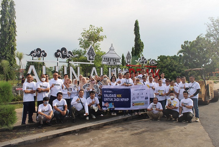 Kampanye dimulai dengan jalan sehat dari kantor KPP Pratama Demak sampai dengan alun-alun Demak, kemudian petugas berkeliling alun-alun untuk membagikan leaflet yang berisi informasi tentang penyatuan NPWP ke dalam NIK dan tata cara validasi NIK menjadi NPWP.