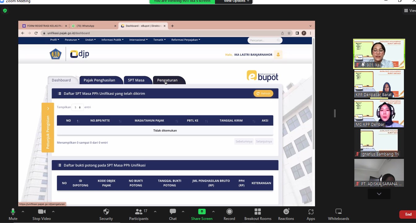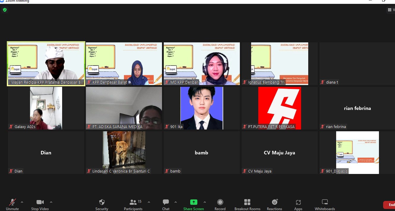 Kantor Pelayanan Pajak (KPP) Pratama Denpasar Barat mengadakan sosialisasi Implementasi e-Bupot Unifikasi secara daring melalui aplikasi Zoom Meeting, di Denpasar (Rabu,13/7).