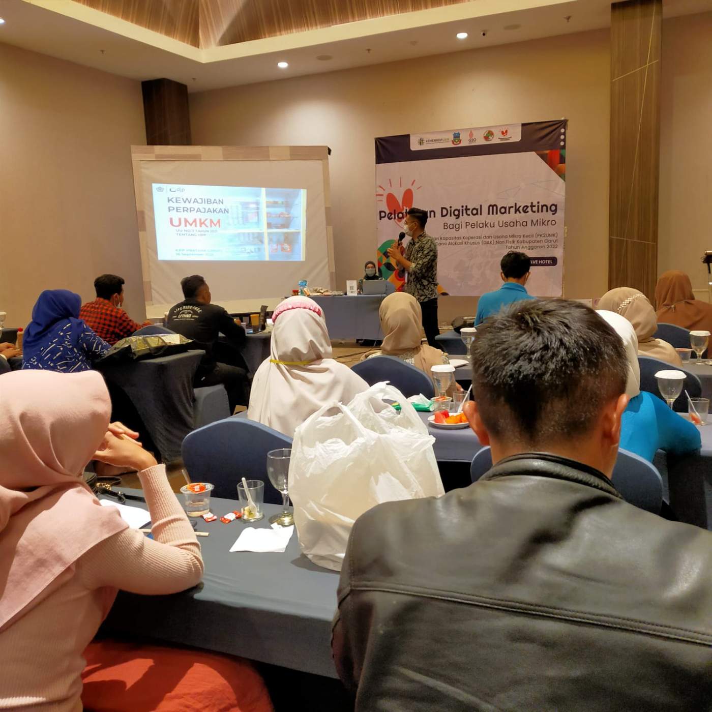 Tim Penyuluh Kantor Pelayanan Pajak (KPP) Pratama Garut hadir sebagai narasumber dalam acara Pelatihan Digital Marketing Bagi Usaha Mikro yang diselenggarakan oleh Dinas Koperasi dan Usaha Kecil Menengah (UKM) Kabupaten Garut di Ballroom Fave Hotel, Jalan Cimanuk No 338 Sukagalih Tarogong Kidul, Kabupaten Garut (Jumat, 16/9).