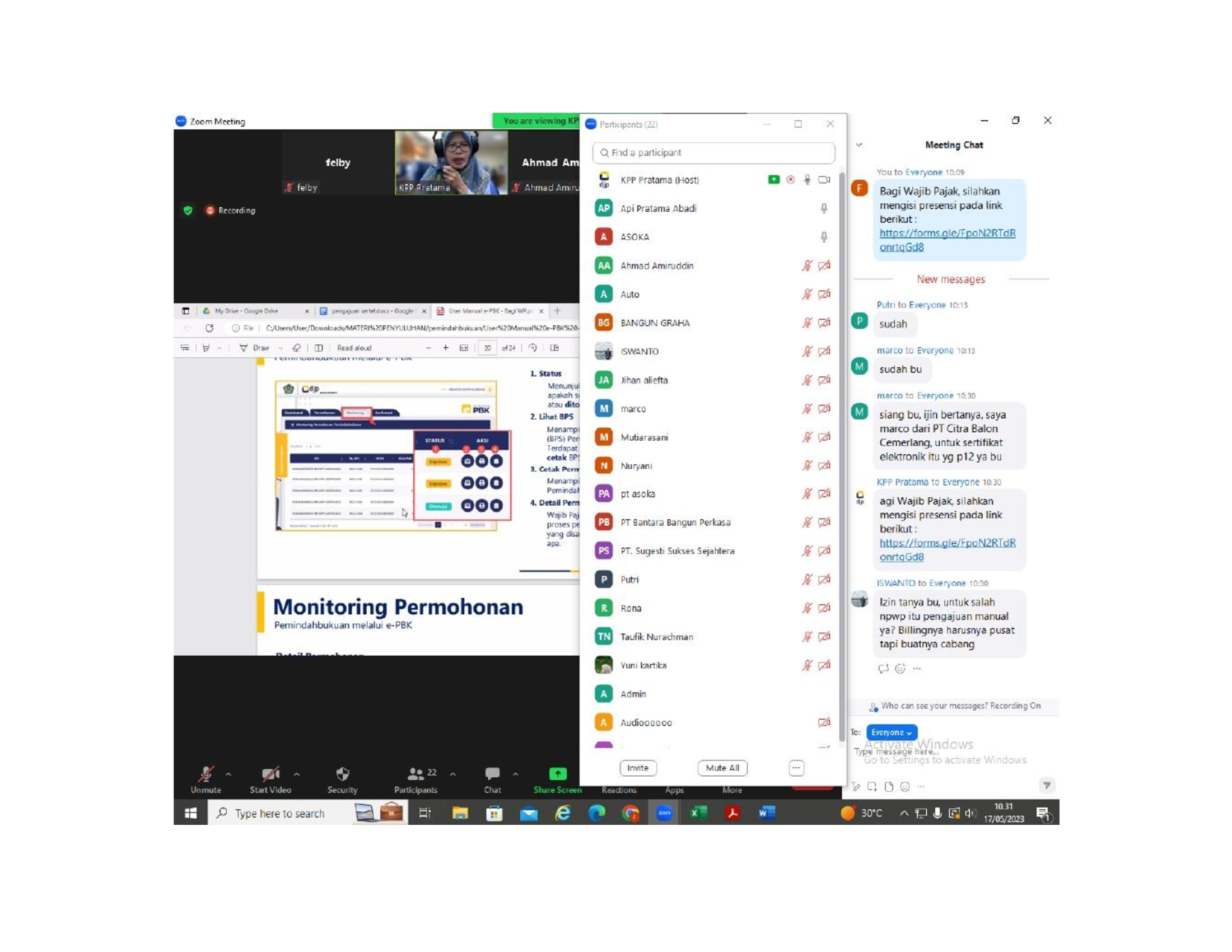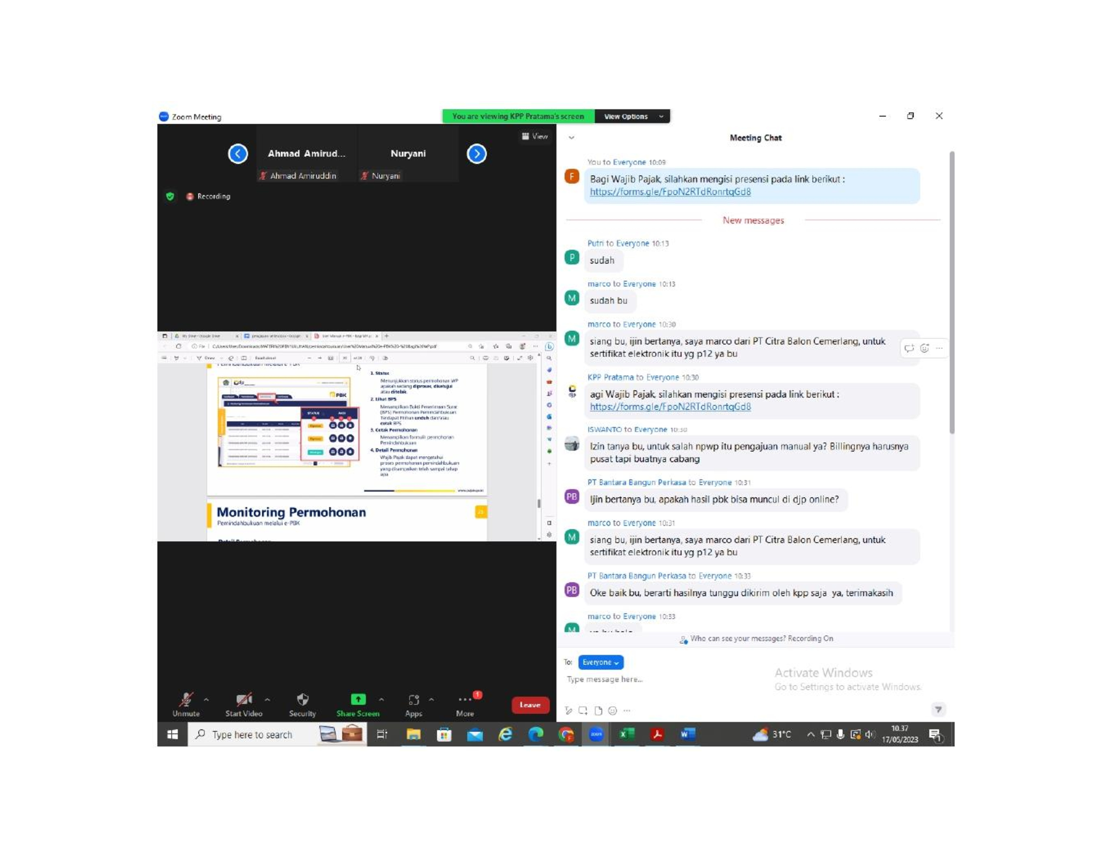 Kantor Pelayanan Pajak (KPP) Pratama Kebon Jeruk Dua mengadakan kegiatan edukasi secara daring tentang pengajuan permohonan pemindahbukuan (Pbk) secara elektronik (e-Pbk) bagi Wajib Pajak Badan melalui aplikasi Zoom Meeting di Kebon Jeruk, Jakarta Barat (Rabu, 17/5).