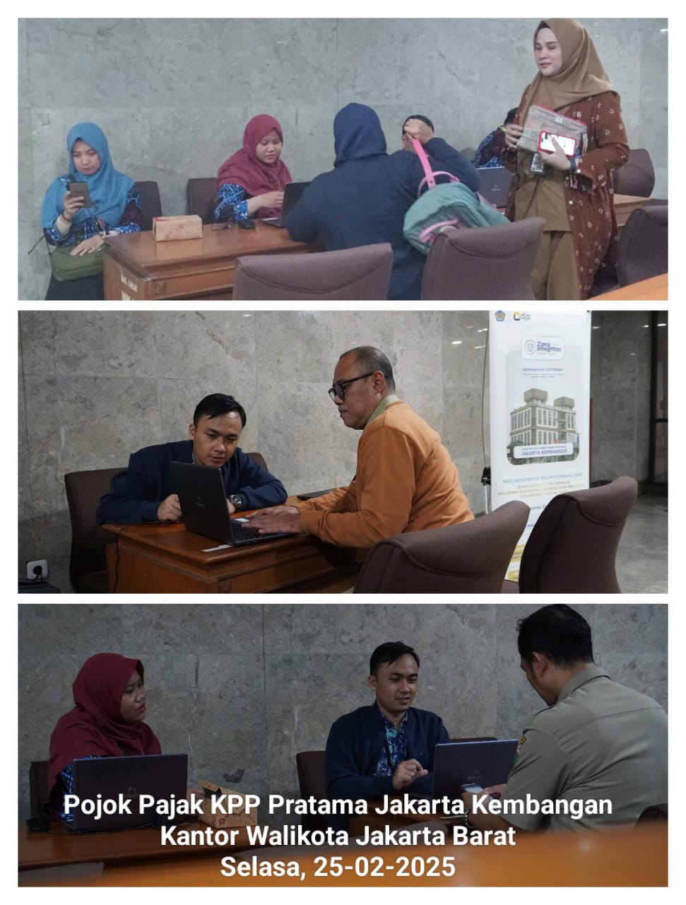 Untuk membantu para pegawai di lingkungan Kantor Walikota Jakarta Barat melakukan pelaporan Surat Pemberitahuan (SPT) Tahunan, KPP Pratama Jakarta Kembangan membuka Pojok Pajak di Ruang Pola, Kota Jakarta Barat, DKI Jakarta (Selasa, 25/2). Pojok Pajak ini merupakan wujud sinergi antar instansi pemerintah serta untuk membantu dan memfasilitasi pegawai di lingkungan Pemerintahan Kota Jakarta Barat melaksanakan kewajiban perpajakan.