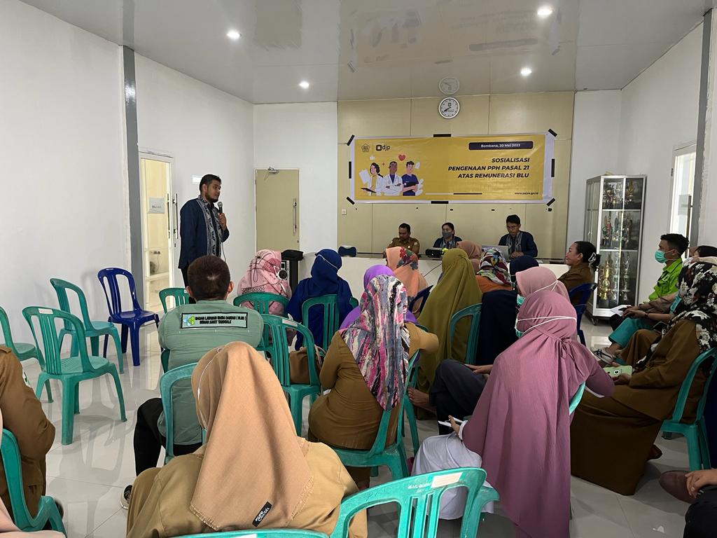 Kantor Pelayanan Pajak (KPP) Pratama Kolaka melakukan kegiatan sosialisasi terkait dengan pengenaan perhitungan dan pemotongan Pajak Penghasilan (PPh) Pasal 21 atas remunerasi bagi Badan Layanan Umum (BLU) bertempat di Rumah Sakit Umum Daerah (RSUD) Tanduale Kabupaten Bombana (Selasa, 30/5).