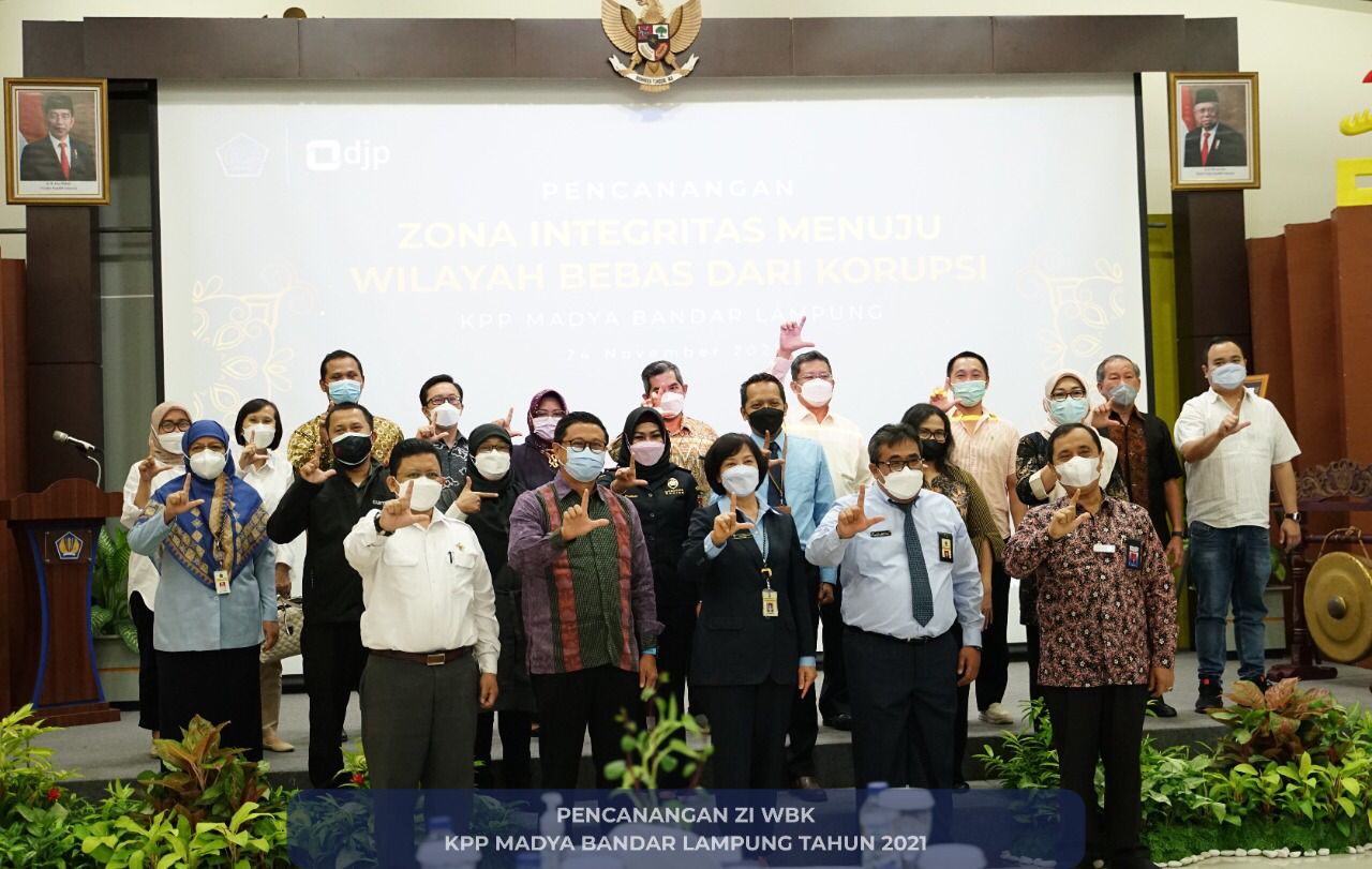 Kantor Pelayanan Pajak (KPP) Madya Bandar Lampung telah melaksanakan pencanangan pembangunan Zona Integritas Wilayah Bebas Korupsi (ZI-WBK) di Aula Raflesiger Kantor Wilayah (Kanwil) Direktorat Jenderal Pajak (DJP) Bengkulu dan Lampung, Kota Bandar Lampung (Rabu, 24/11).