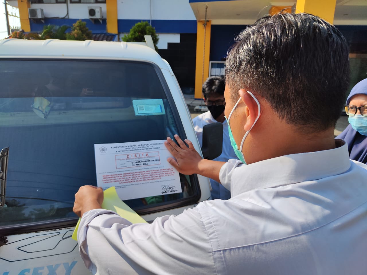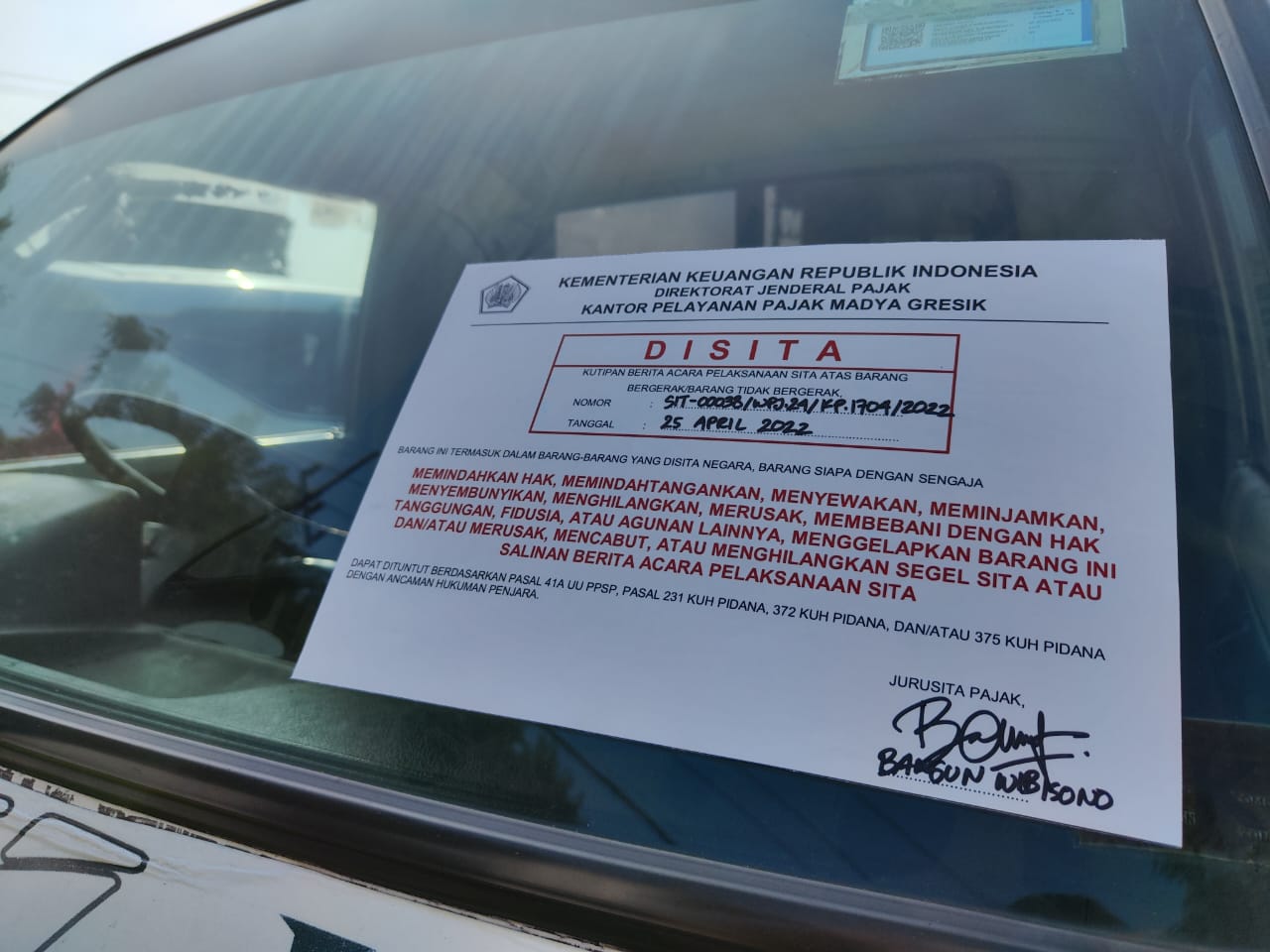 Juru Sita Pajak Negara (JSPN) Kantor Pelayanan Pajak (KPP) Madya Gresik kembali melakukan penyitaan terhadap aset milik penunggak pajak. Kali ini, aset yang disita berupa satu unit mobil pick up milik PT TM di Kabupaten Gresik (Senin, 25/4).