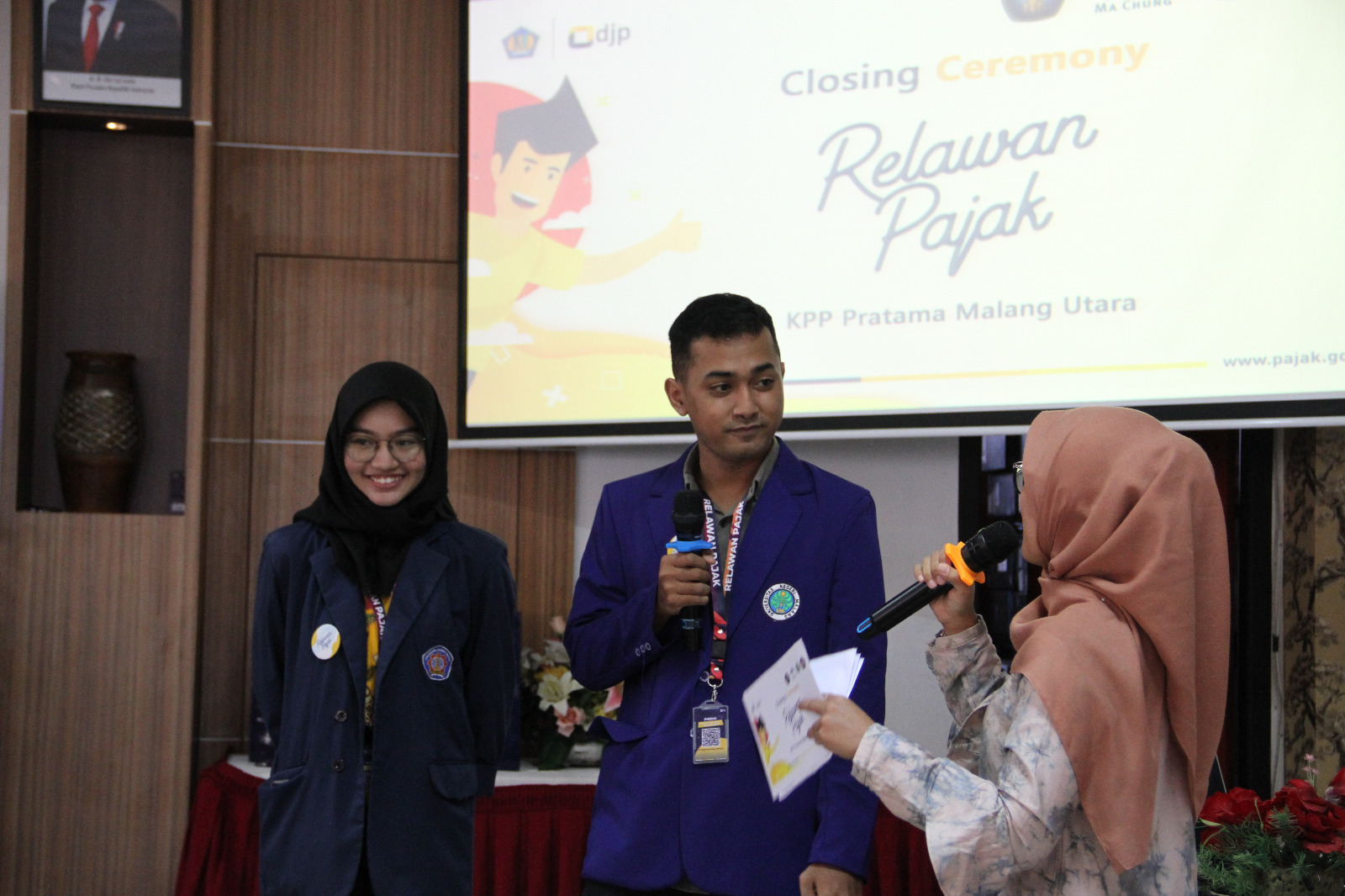 Acara ini diselenggarakan dalam rangka menutup rangkaian kegiatan Relawan Pajak yang telah bekerja sama dengan KPP Pratama Malang Utara selama kegiatan penyampaian Surat Pemberitahuan (SPT) Tahunan sejak bulan Februari hingga April lalu. Kepala KPP Pratama Malang Utara Dwi Ismurdiono dalam sambutannya memberikan ucapan terima kasih atas bantuan yang telah diberikan oleh para Relawan Pajak. Lebih lanjut, Dwi berharap bahwa kegiatan ini dapat dijadikan sebagai edukasi sejak dini kepada para mahasiswa mengenai pentingnya kesadaran akan pajak untuk pembangunan negara.
