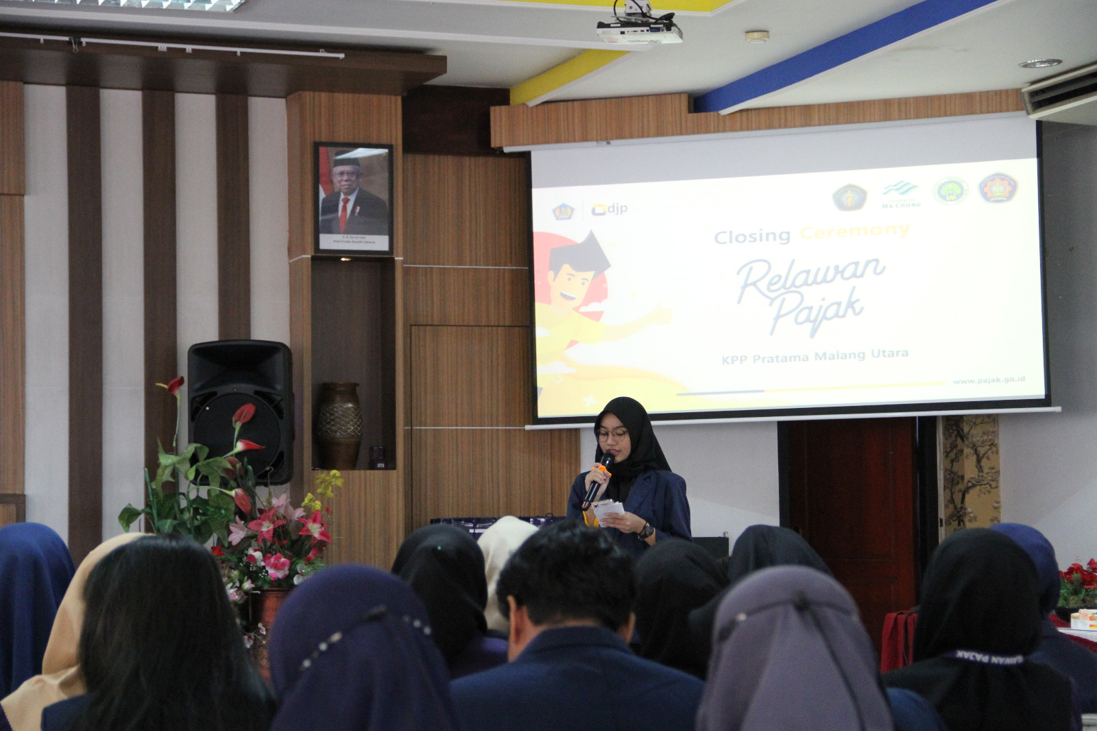 Kantor Pelayanan Pajak (KPP) Pratama Malang Utara mengadakan acara Penutupan Kegiatan Pendayagunaan Relawan Pajak KPP Pratama Malang Utara Tahun 2023. Acara ini dilaksanakan di Aula KPP Pratama Malang Utara (Jumat, 26/5). Dalam acara ini, KPP Pratama Malang Utara mengundang para Relawan Pajak dan dosen pembimbing dari empat universitas di Kota Malang, antara lain Universitas Negeri Malang, Universitas Ma Chung, Universitas Brawijaya, dan Politeknik Negeri Malang.