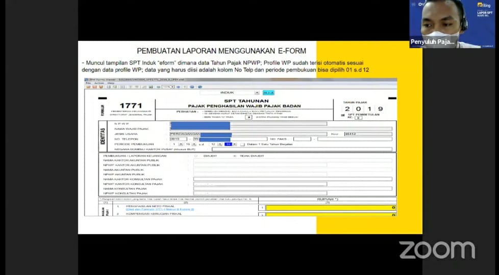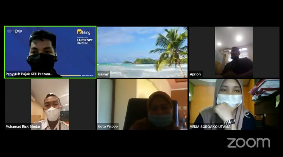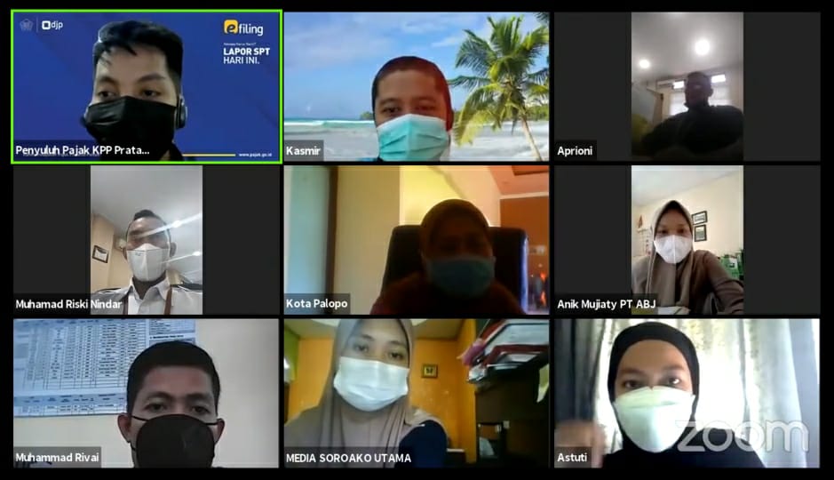 Sejumlah Wajib Pajak Badan yang bergerak di bidang jasa pendidikan mengikuti kelas pajak daring yang digelar oleh Kantor Pelayanan Pajak (KPP) Pratama Palopo (Kamis, 29/4). Kegiatan ini dilangsungkan melalui aplikasi webinar Zoom Meeting di ruang aula KPP Pratama Palopo, Kota Palopo.