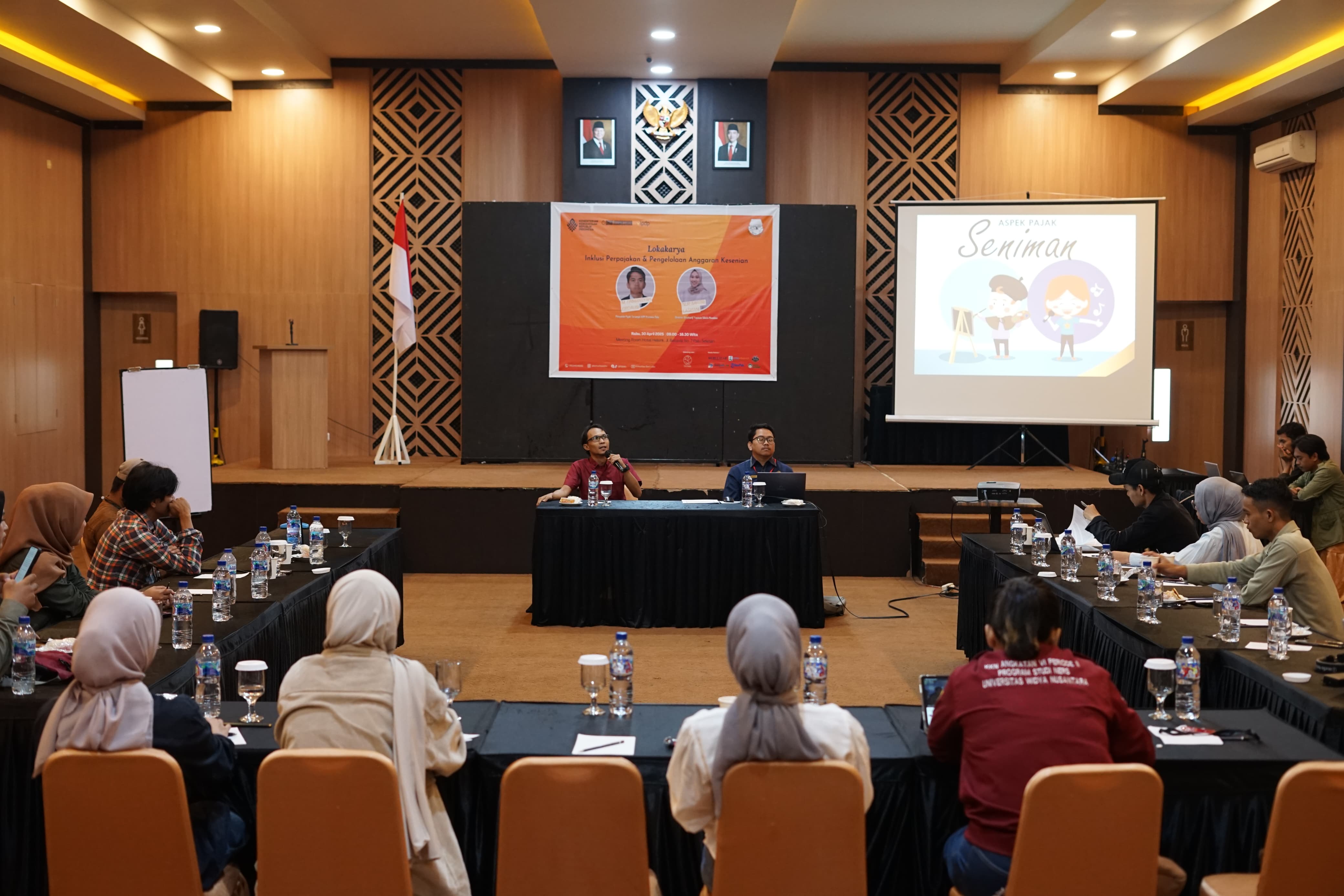 Kantor Pelayanan Pajak (KPP) Pratama Palu memenuhi undangan Lokakarya Inklusi Perpajakan dan Pengelolaan Anggaran Keseinian dari Komunitas Seni Lobo Sulawesi Tengah di Ballroom Hotel Helsinki, Birobuli Utara, Palu Selatan, Kota Palu, Sulawesi Tengah (Rabu, 20/8).