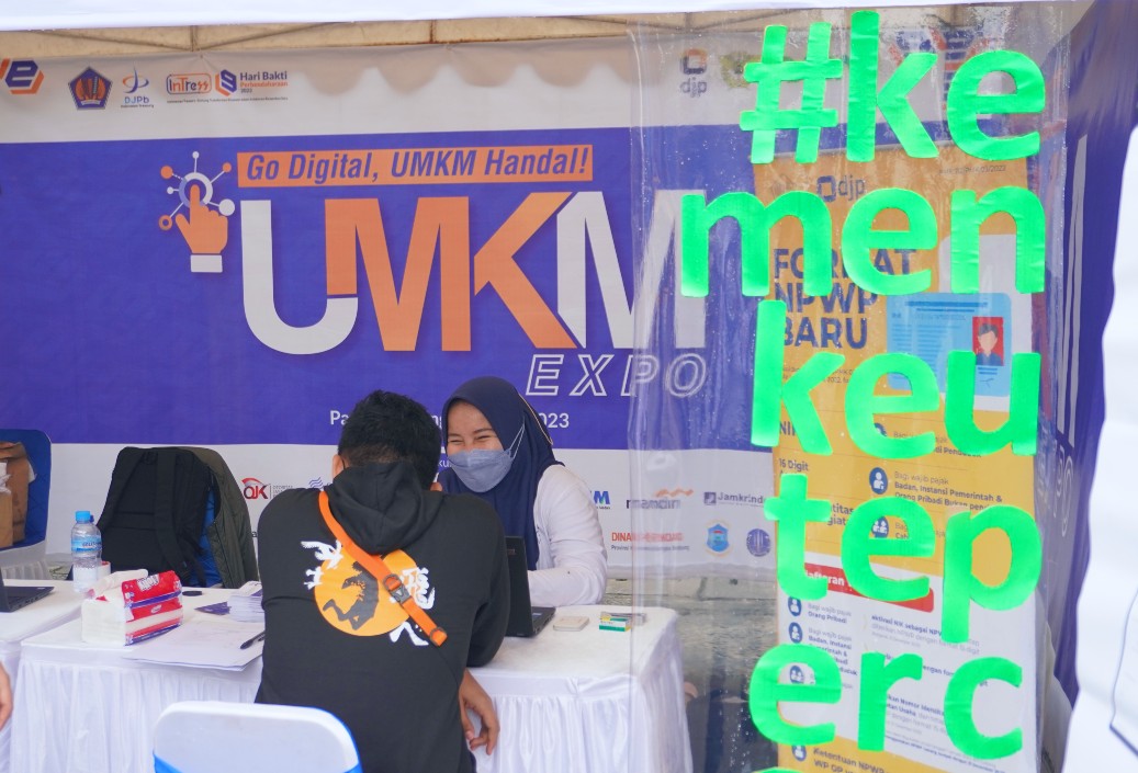 Pojok layanan diadakan untuk memeriahkan acara UMKM EXPO tahun 2023 di Kota Pangkalpinang.