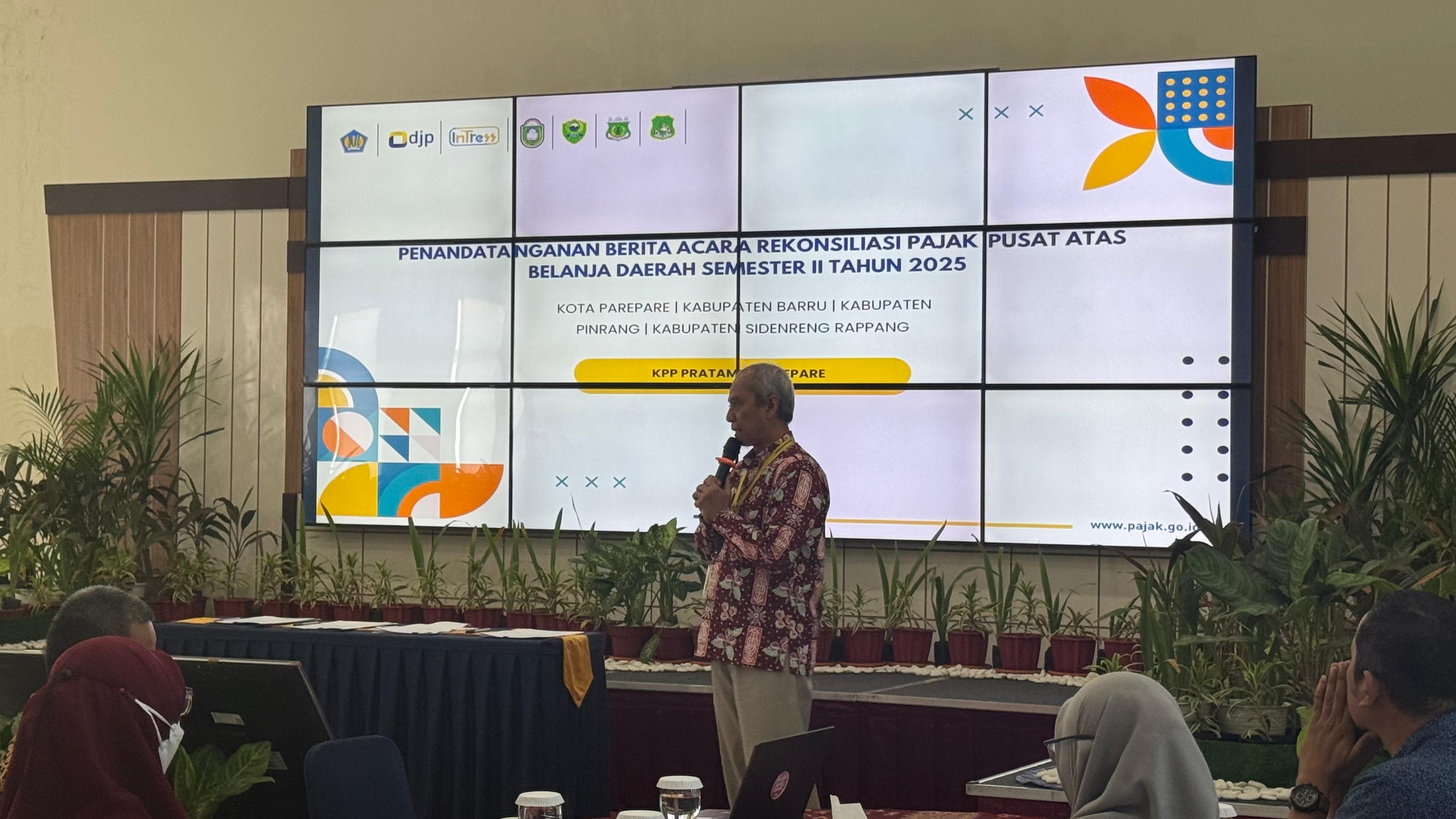 Kantor Pelayanan Pajak (KPP) Pratama Parepare dan Kantor Pelayanan Perbendaharaan Negara (KPPN) Parepare bersinergi dalam melaksanakan kegiatan Pembahasan dan Penandatanganan Berita Acara Rekonsiliasi Penyetoran Pajak Pusat atas Belanja Daerah Semester II Tahun 2025 bersama Pemerintah Kota Parepare dan Pemerintah Daerah Kabupaten Barru, Kabupaten Pinrang, serta Kabupaten Sidenreng Rappang (Jumat, 30/1)