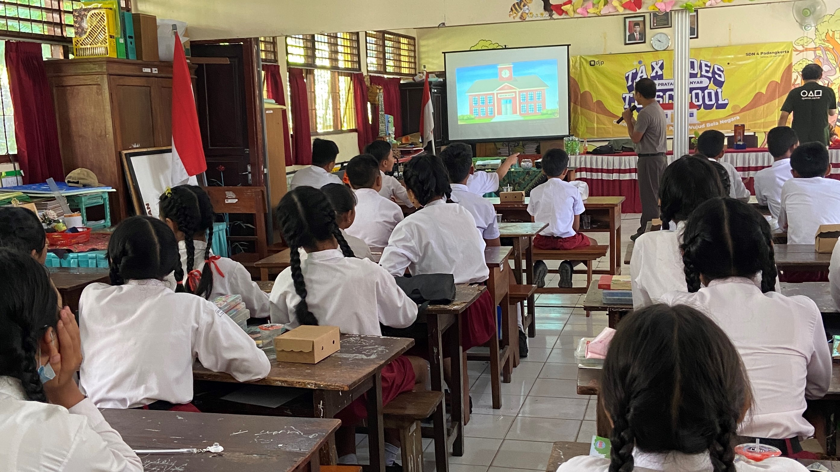 Kantor Pelayanan Pajak (KPP) Pratama Gianyar dan Kantor Pelayanan, Penyuluhan, dan Konsultasi Perpajakan (KP2KP) Amlapura gelar kegiatan Tax Goes to School (TGTS) di SD Negeri 4 Padangkerta, Karangasem (Selasa, 23/5).