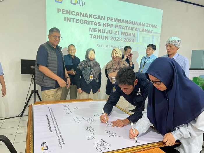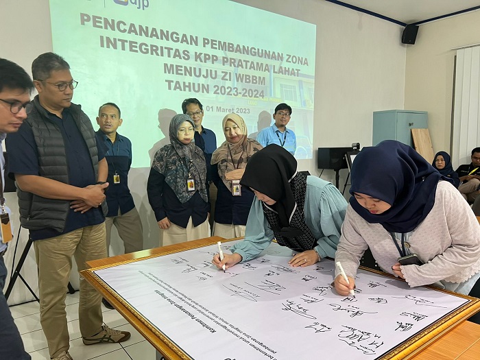 Kantor Pelayanan Pajak (KPP) Pratama Lahat mencanangkan Zona Integritas menuju Wilayah Birokrasi Bersih dan Melayani (ZI WBBM) tahun 2023-2024 di Ruang Rapat KPP Pratama Lahat, Kabupaten Lahat, Sumatera Selatan (Rabu, 1/3).