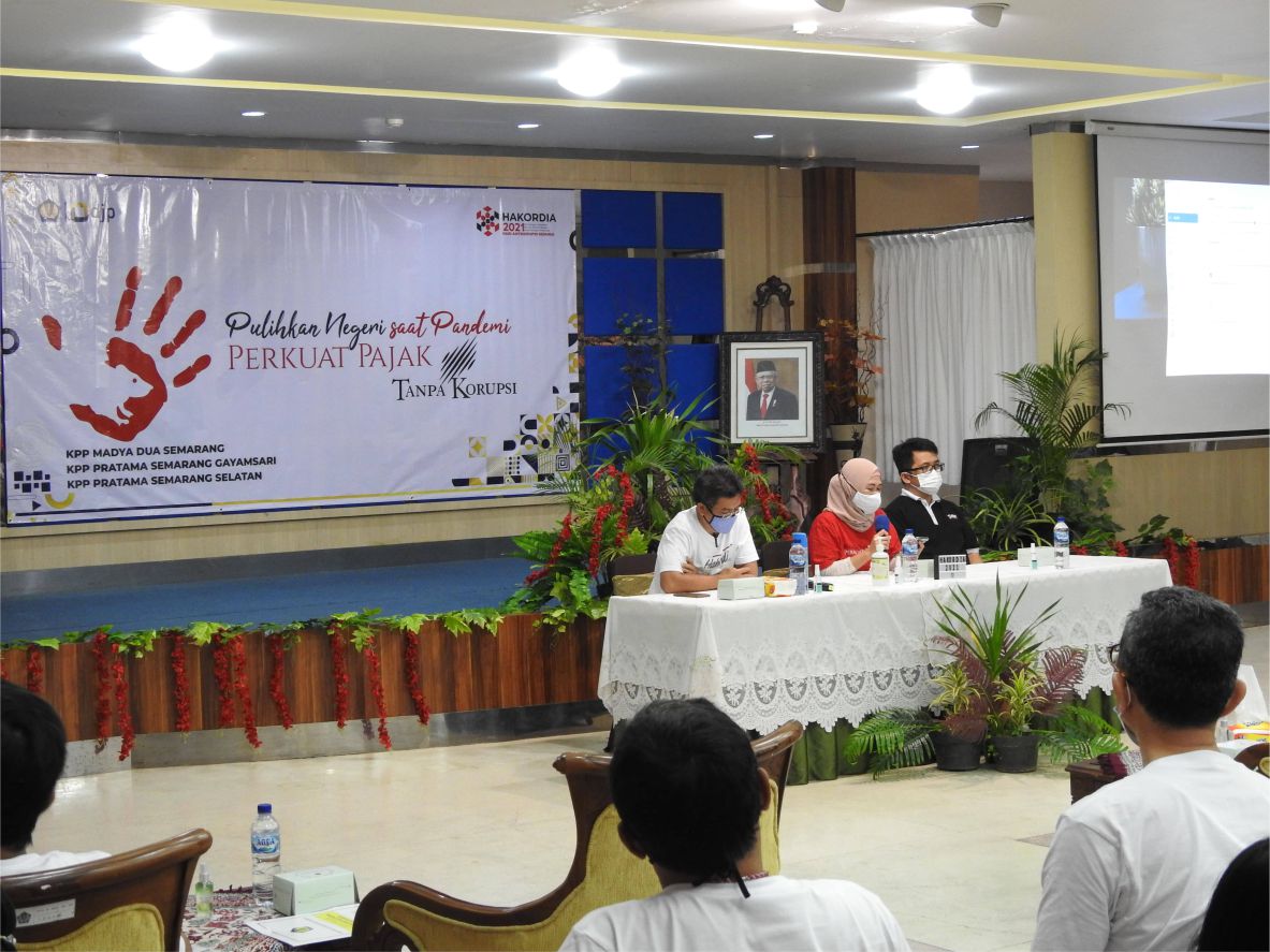 Kantor Pelayanan Pajak (KPP) Pratama Semarang Gayamsari bersama dengan KPP Madya Dua Semarang dan KPP Pratama Semarang Selatan memperingati Hari Anti Korupsi Sedunia (Hakordia) secara luring di Semarang (Jumat, 3/12).