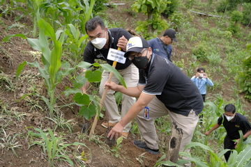 Kepala Seksi Pelayanan Ghani Gutoyo dan Kepala Seksi Pengawasan II Rizky Syabana berpartisipasi langsung dalam aktivitas menanam pohon di area tersebut.