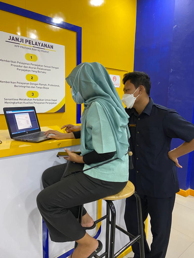 Fasilitas tersebut berupa laptop yang dapat digunakan wajib pajak dalam hal pendaftaran Nomor Pokok Wajib Pajak (NPWP) secara daring yang dilakukan secara mandiri namun dapat juga dengan bantuan petugas KPP Pratama Rantau Prapat.