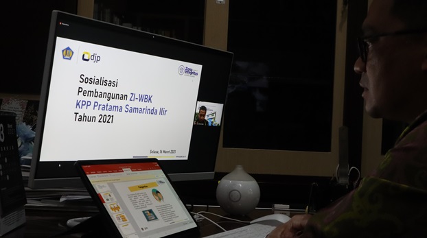 Kantor Pelayanan Pajak (KPP) Pratama Samarinda Ilir melaksanakan sosialisasi Pembangunan Zona Integritas (ZI) dan Wilayah Bebas Korupsi (WBK) secara daring menggunakan aplikasi Zoom Meeting di KPP Pratama Samarinda Ilir, Samarinda (Rabu,17/3).