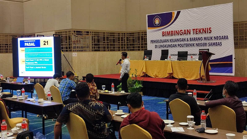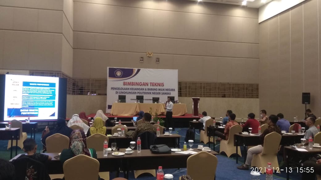 Asisten Penyuluh Pajak Kantor Pelayanan Pajak (KPP) Pratama Singkawang menghadiri undangan Bimbingan Teknis (Bimtek) Pengelolaan Keuangan dan Barang Milik Negara di Lingkungan Politeknik Negeri Sambas (Poltesa) di Ballroom Hotel Swiss-Belinn Kota Singkawang (Senin, 13/12). Bimtek dilaksanakan secara tatap muka dengan tetap mematuhi protokol kesehatan.