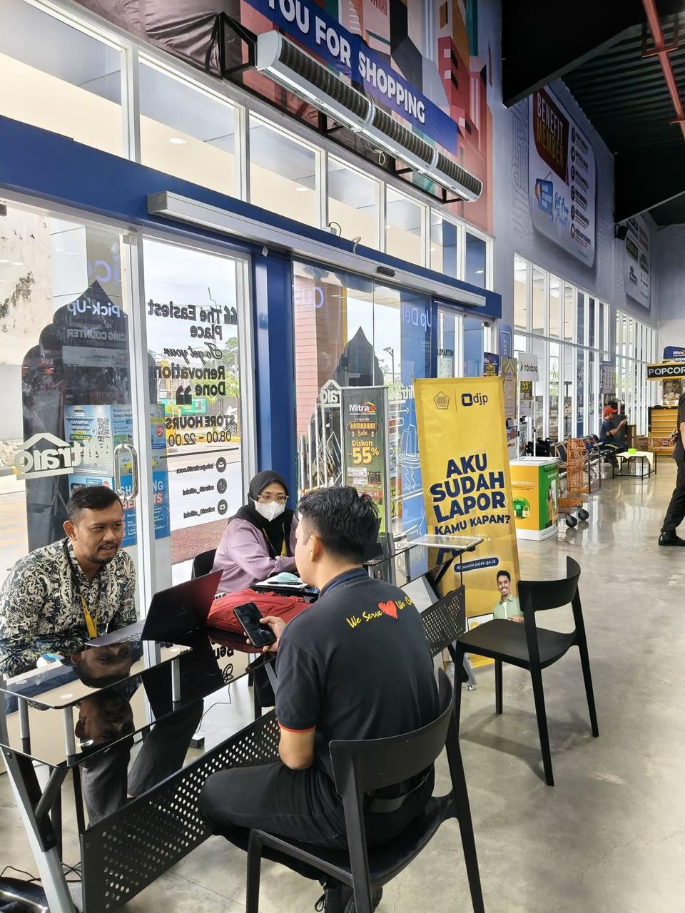 Bekerja sama dengan pusat perbelanjaan Mitra10, Kantor Pelayanan Pajak (KPP) Pratama Tasikmalaya menggelar layanan Pojok Pajak sekaligus menyapa masyarakat yang hadir di Mitra10 Tasikmalaya, Kota Tasikmalaya, Jawa Barat (Kamis, 27/3).