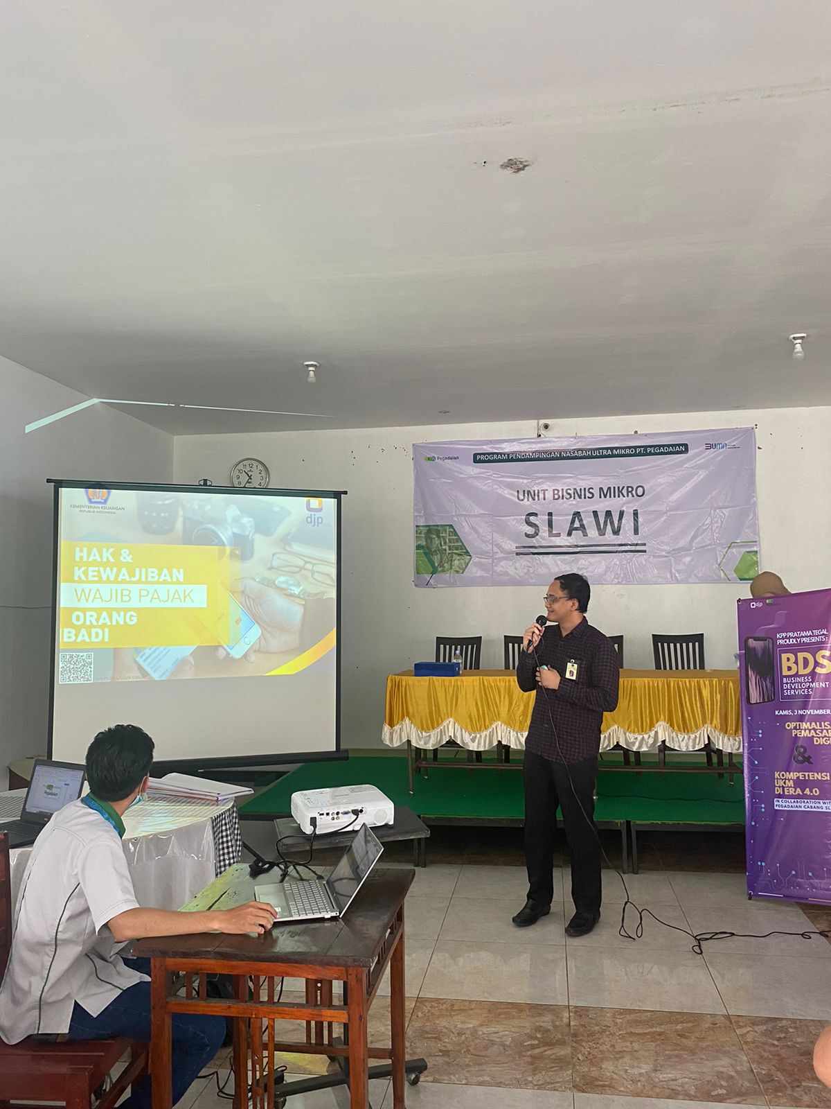 Kantor Pelayanan Pajak (KPP) Pratama Tegal menggandeng PT Pegadaian untuk menyelenggarakan Business Development Services (BDS) di Rumah Makan New Edna, Slawi, Tegal (Kamis, 3/11).