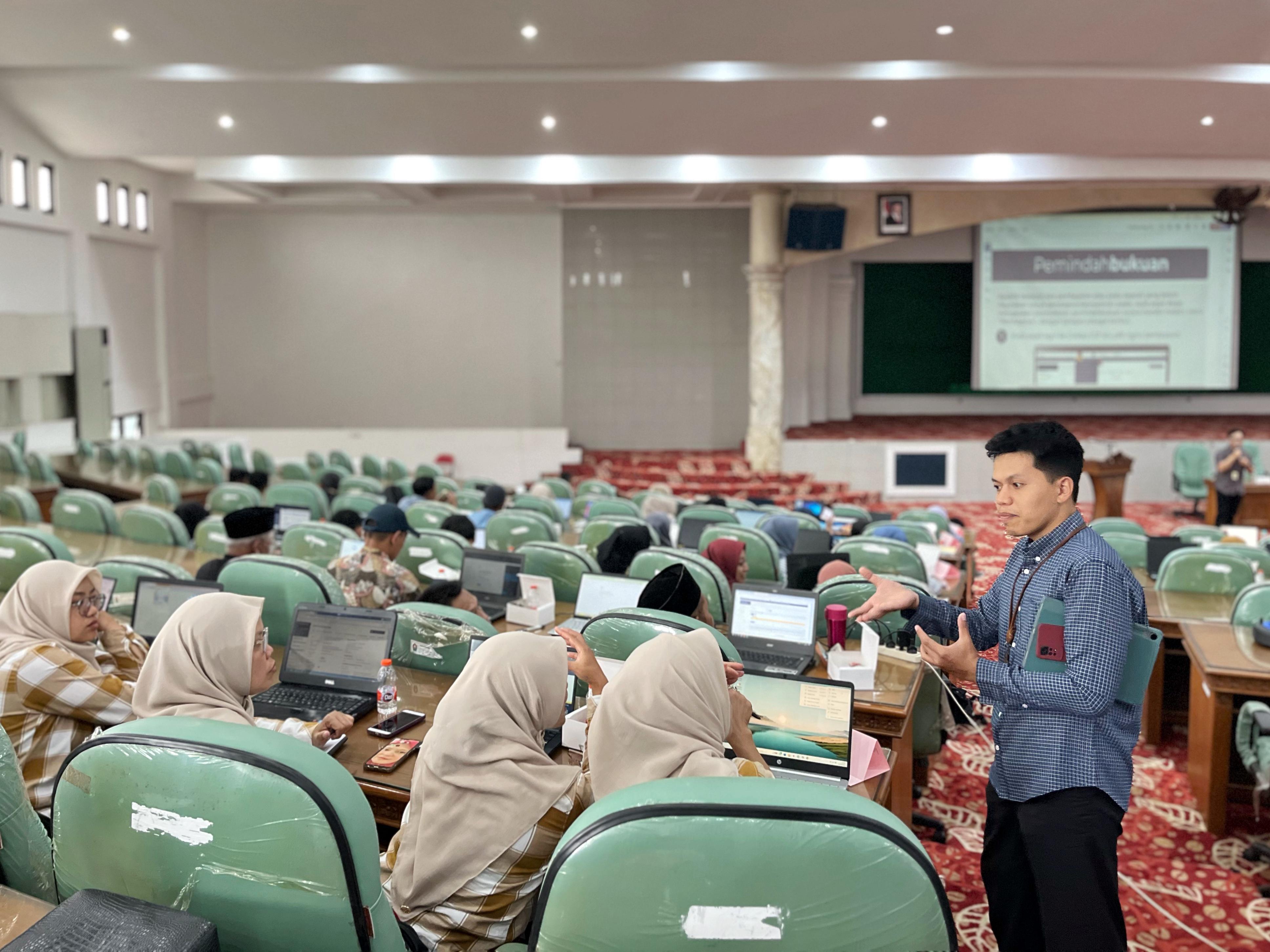 Para bendahara desa telah membawa dan menyiapkan laptop untuk mempelajari aplikasi Coretax DJP yang diakses pada laman https://coretaxdjp.pajak.go.id. Satriya menjelaskan tentang cara login, pengenalan menu Coretax, skema role akses, sertifikat elektronik, dan kode otorisasi DJP.