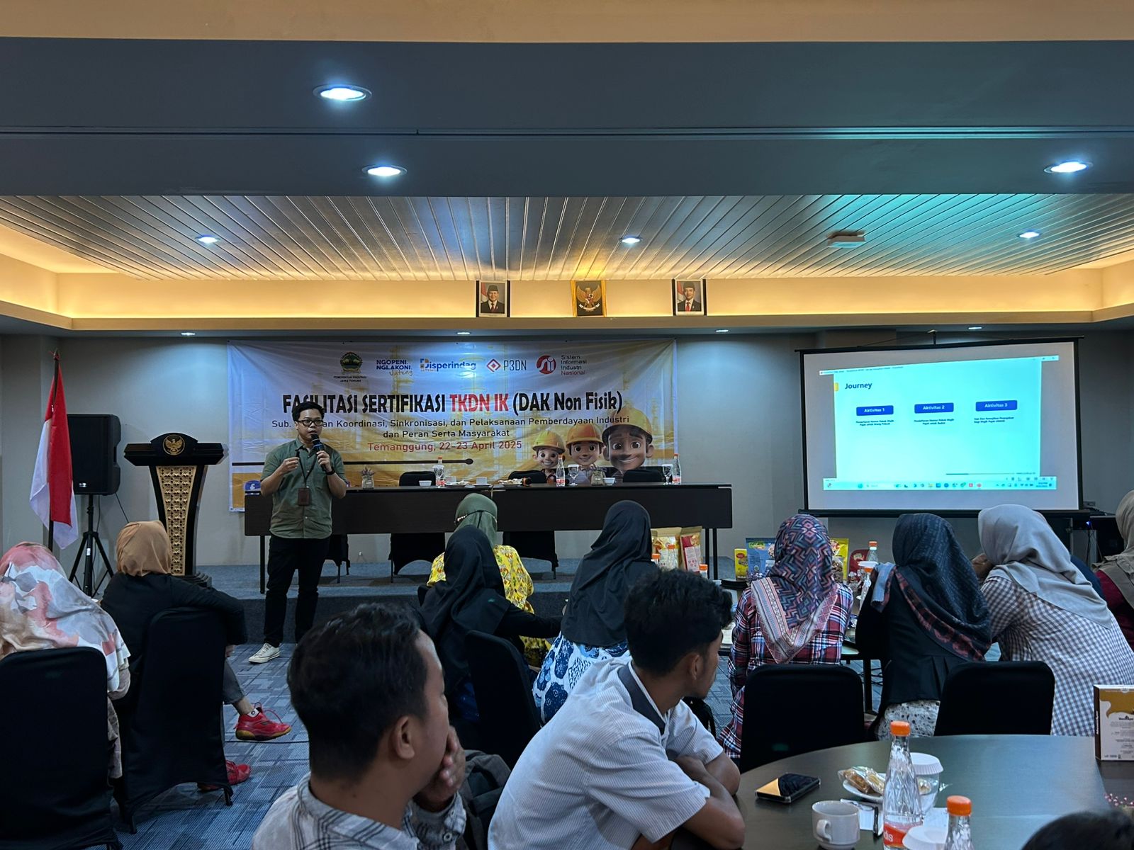 Kantor Pelayanan Pajak (KPP) Pratama Temanggung menjadi salah satu narasumber dalam acara Fasilitasi Sertifikasi Tingkat Komponen Dalam Negeri Industri Kecil (TKDN IK) di Hotel Front One Resort, Kabupaten Temanggung, Jawa Tengah (Selasa, 22/4). Kegiatan ini diselenggaran oleh Dinas Perindustrian dan Perdagangan (Disperindag) Provinsi Jawa Tengah dan diikuti oleh 40 pelaku usaha industri kecil.