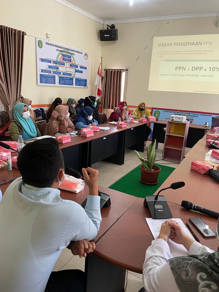 Kegiatan ini dilaksanakan untuk memenuhi undangan sebagai narasumber sosialisasi dari Dinas Koperasi Kabupaten Kutai Kartanegara bagi Pelaku Usaha UMKM Kecamata Sanga-Sanga. Tujuan diadakannya sosialisasi tersebut adalah untuk meningkatkan kepatuhan dan pengetahuan Wajib Pajak UMKM Kecamatan Sanga-Sanga tentang kewajiban pajaknya.
