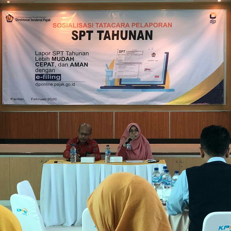 Bertempat di aula lantai 2 KPPN Pacitan, KPP Pratama Ponorogo memenuhi undangan KPPN Pacitan untuk menjadi narasumber dalam acara Sosialisasi Tata Cara Pelaporan SPT Tahunan melalui e-Filing (Rabu, 12/2). Acara ini diikuti oleh bendahara dan operator satuan kerja lingkup bayar KPPN Pacitan.