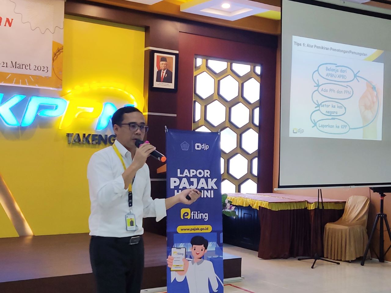 Kantor Pelayanan Penyuluhan dan Konsultasi Perpajakan (KP2KP) Takengon menyelenggarakan sosialisasi kewajiban perpajakan bendahara pemerintah dan pelatihan e-Bupot Instansi Pemerintah (Senin, 20/3). Sosialisasi ini ditujukan kepada enam puluh undangan dari instansi pemerintah di Kabupaten Aceh Tengah. Kegiatan berlangsung selama tiga hari, sejak Kamis, 16 Maret 2023 sampai hari Senin, 20 Maret 2023.