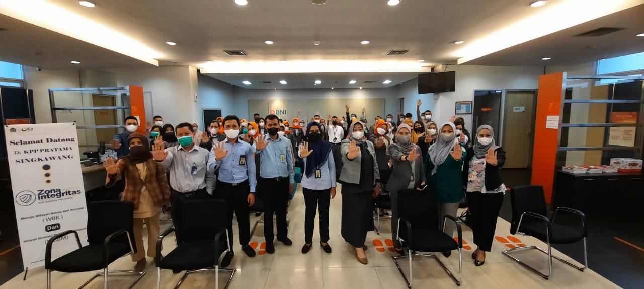 Kepala Seksi Pelayanan bersama dengan Asisten Penyuluh Pajak Kantor Pelayanan Pajak (KPP) Pratama Singkawang mengadakan sosialisasi pengisian SPT Tahunan Orang Pribadi dan Program Pengungkapan Sukarela (PPS) kepada karyawan Bank BNI di Jl Yos Sudarso Kota Singkawang (16/3).