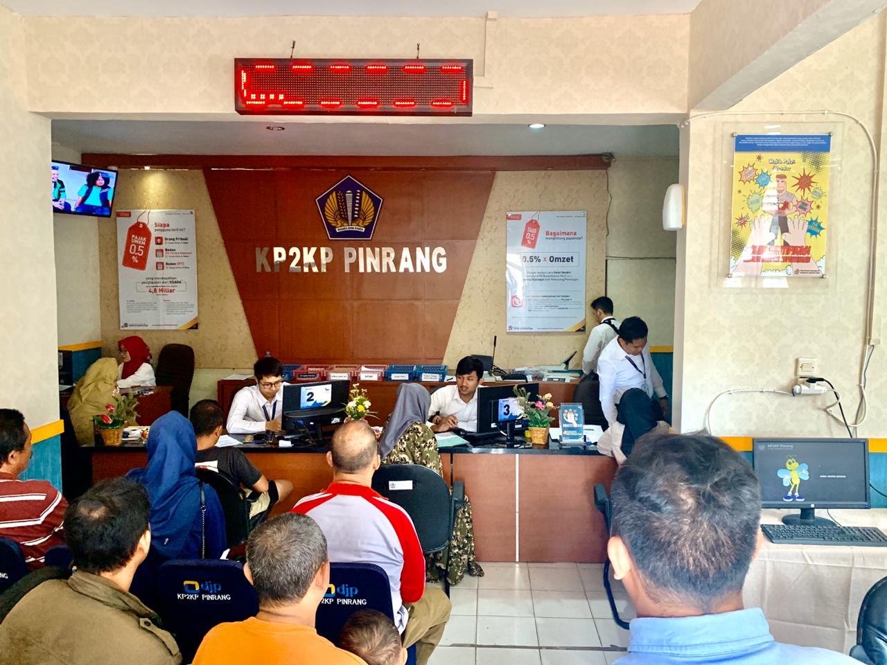 Antusiasme wajib pajak dalam menjalankan hak dan kewajiban perpajakannya mengalami peningkatan, terlihat dari lonjakan antrean yang terus meningkat. Hal tersebut pun memacu KP2KP Pinrang untuk lebih mengoptimalkan pelayanan. Dengan sigap, para petugas KP2KP Pinrang pun membantu para wajib pajak yang datang langsung ke KP2KP Pinrang.