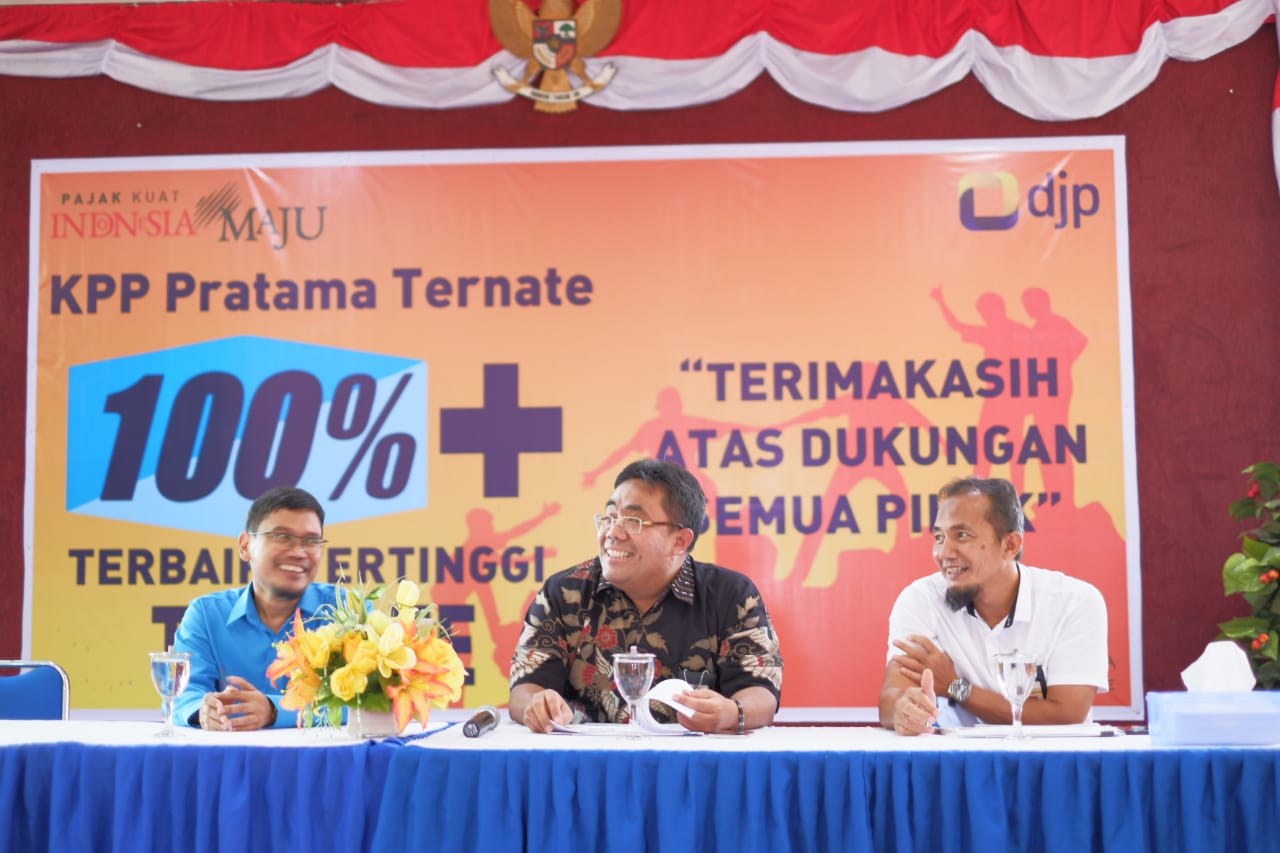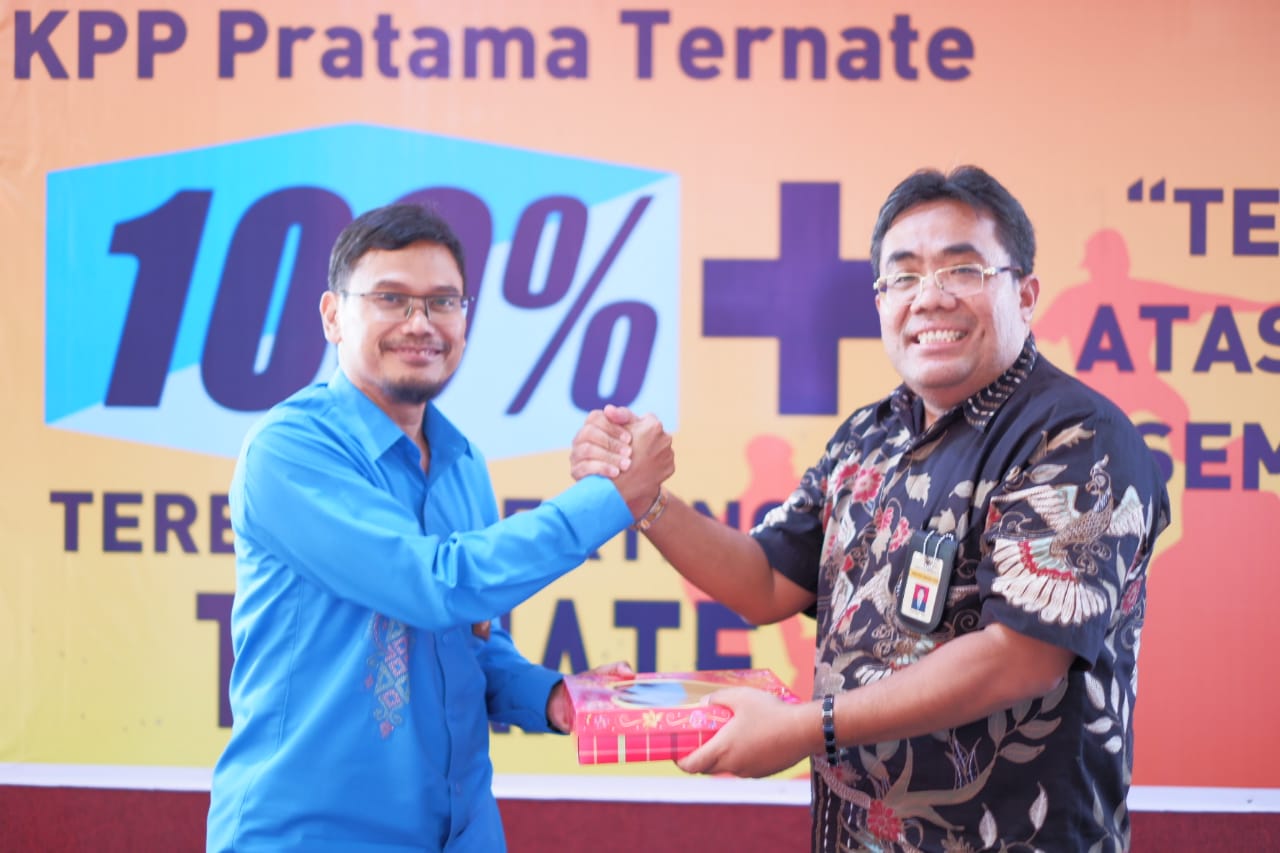 Kepala Kanwil Suluttenggomalut Tri Bowo mengunjungi KPP Pratama Ternate untuk memberikan apresiasi atas terlampauinya target penerimaan kantor di tahun 2019 (Kamis, 2/1).